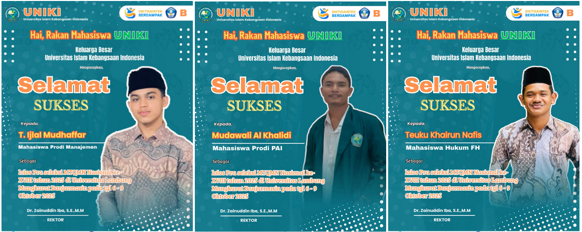 Tiga Mahasiswa UNIKI Lolos Seleksi MTQ Mahasiswa Nasional 2025 News.acehcc.com. Bireuen (27/8/2025) Tiga mahasiswa Universitas Islam Kebangsaan Indonesia (UNIKI) lolos…